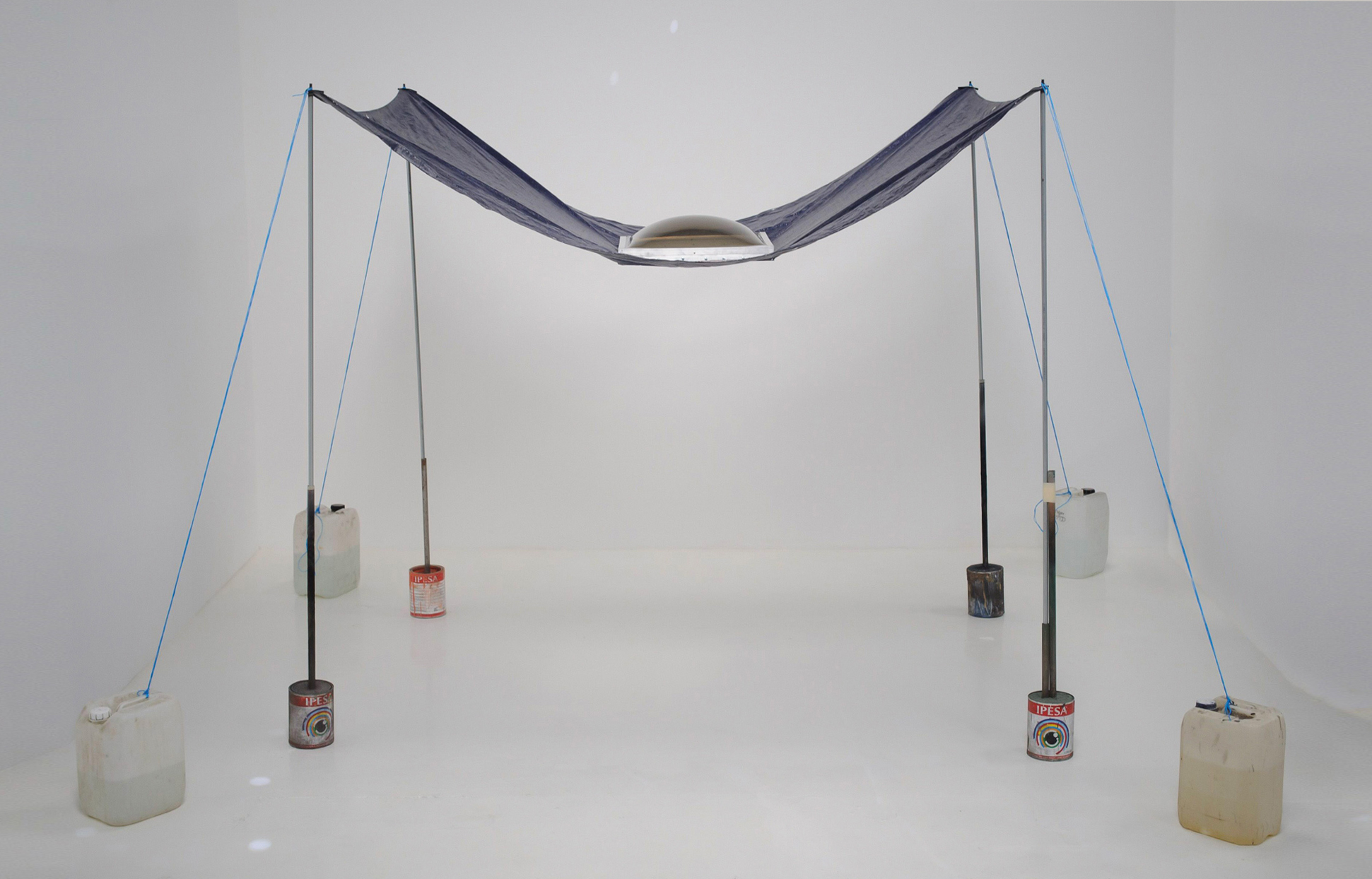 Tianguis Tianguis. Lona, domo, tensores, cemento y botes. 260 x 500 x 500 cm aprox. 2021 PREVIO SIGUIENTE